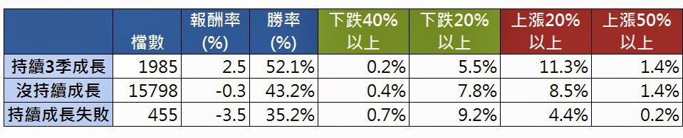 選擇1. 【持續成長失敗】之前3季都成長,但這季沒成長 (成長 -> 成長 -> 成長 -> 沒成長)