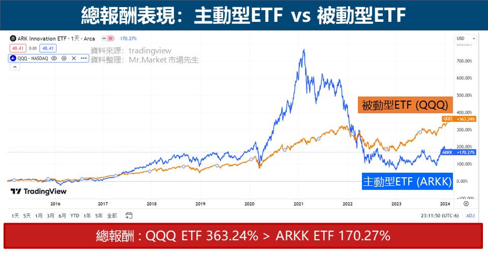 - 主動式ETF vs. 被動式ETF:ARKK vs QQQ