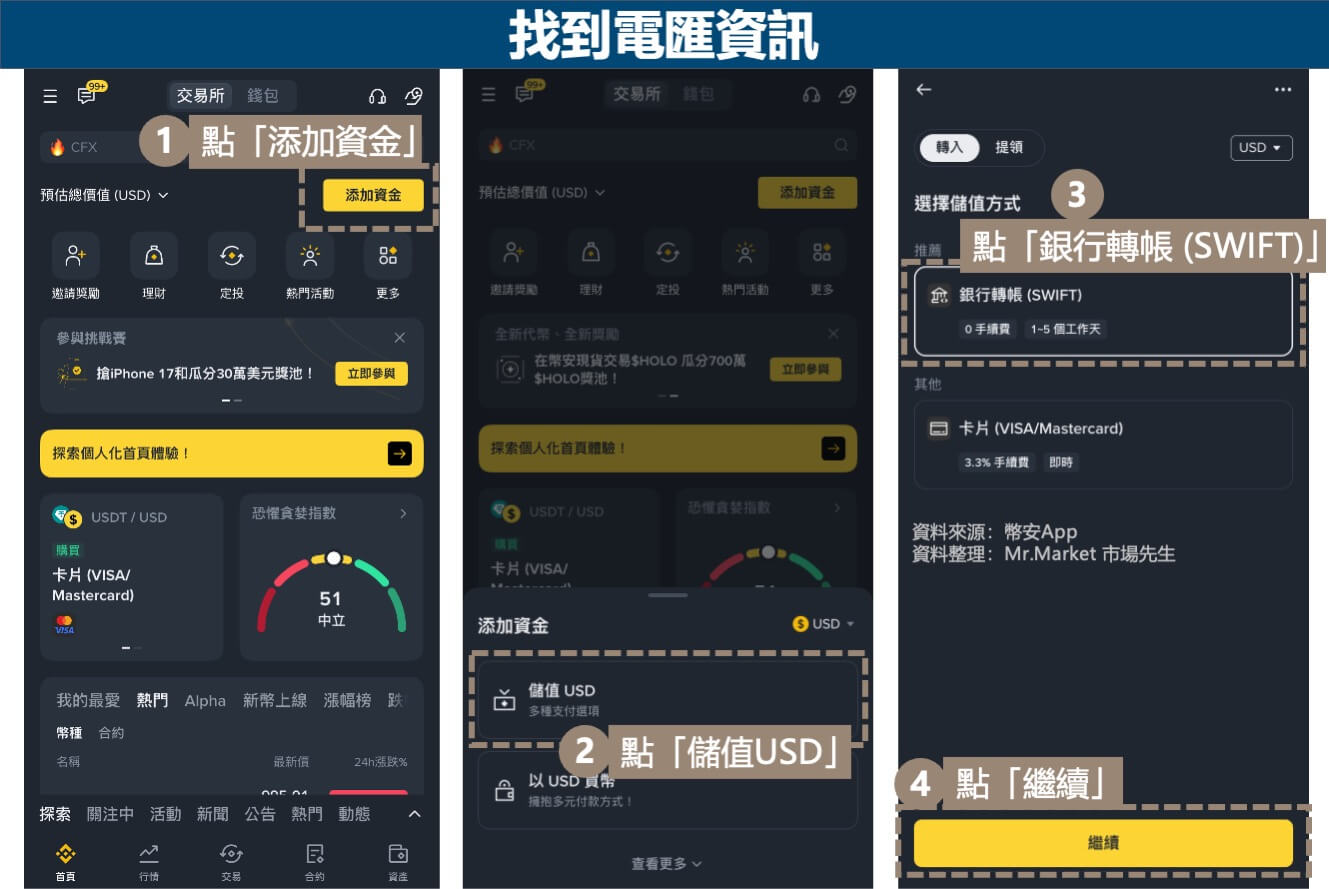 銀行轉帳(SWIFT)入金USD到幣安 步驟教學