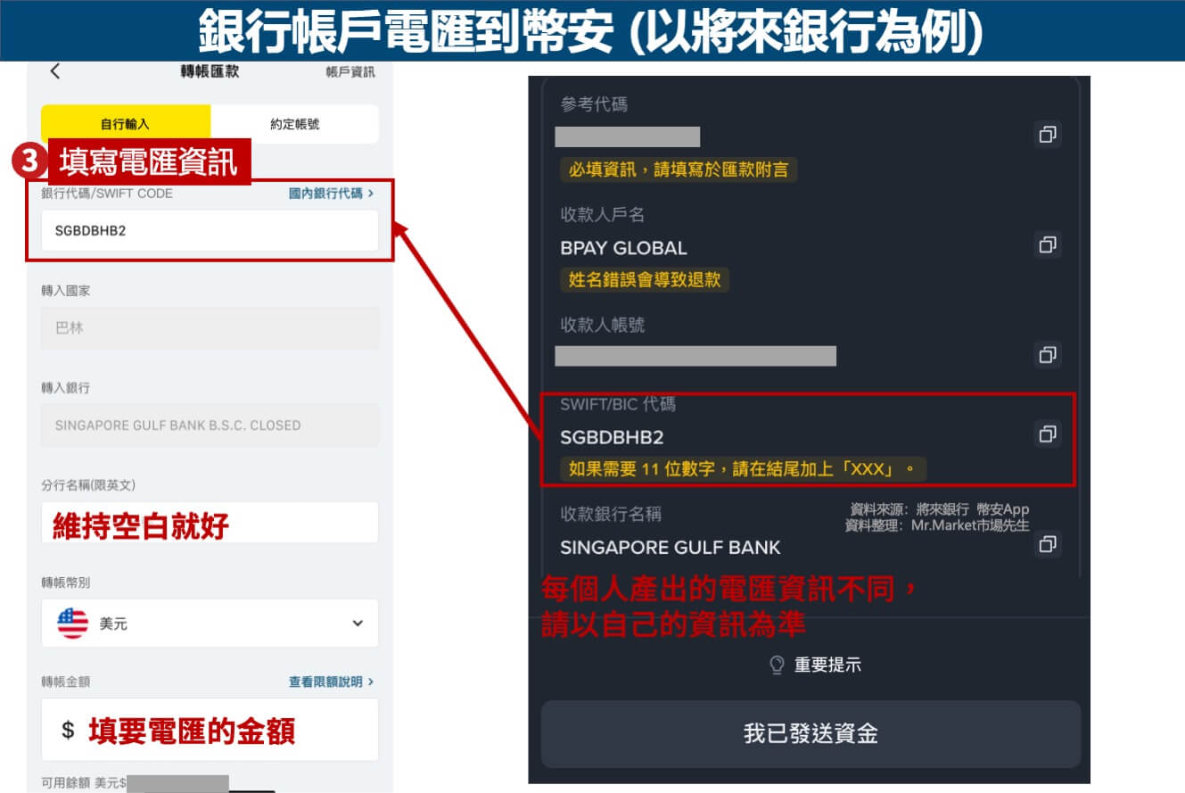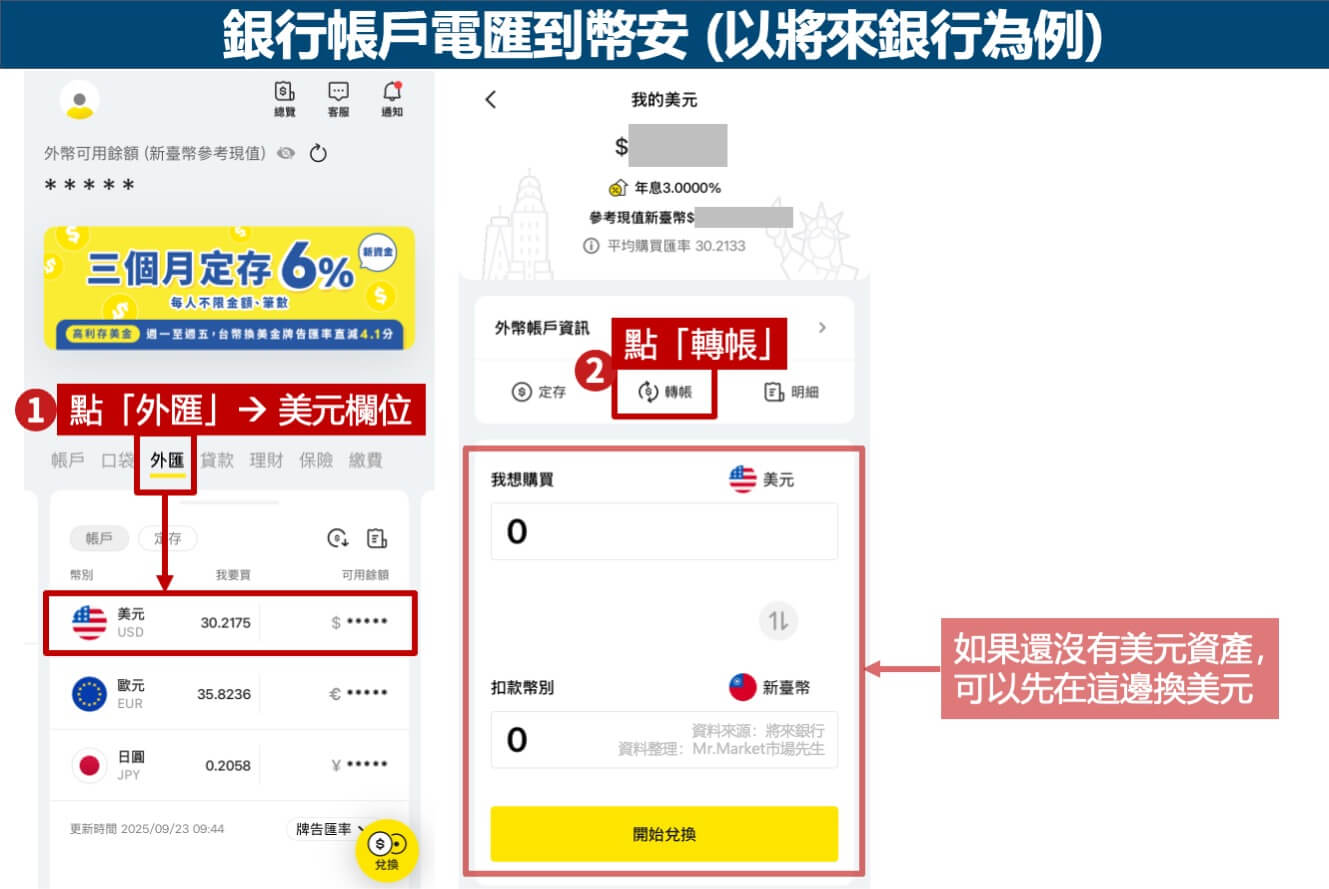 以下也會以將來銀行入金USD到幣安為例介紹。