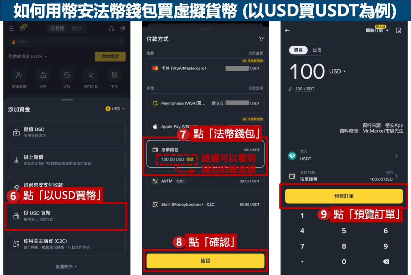 本篇將以USD、幣安App為例介紹法幣入金流程。