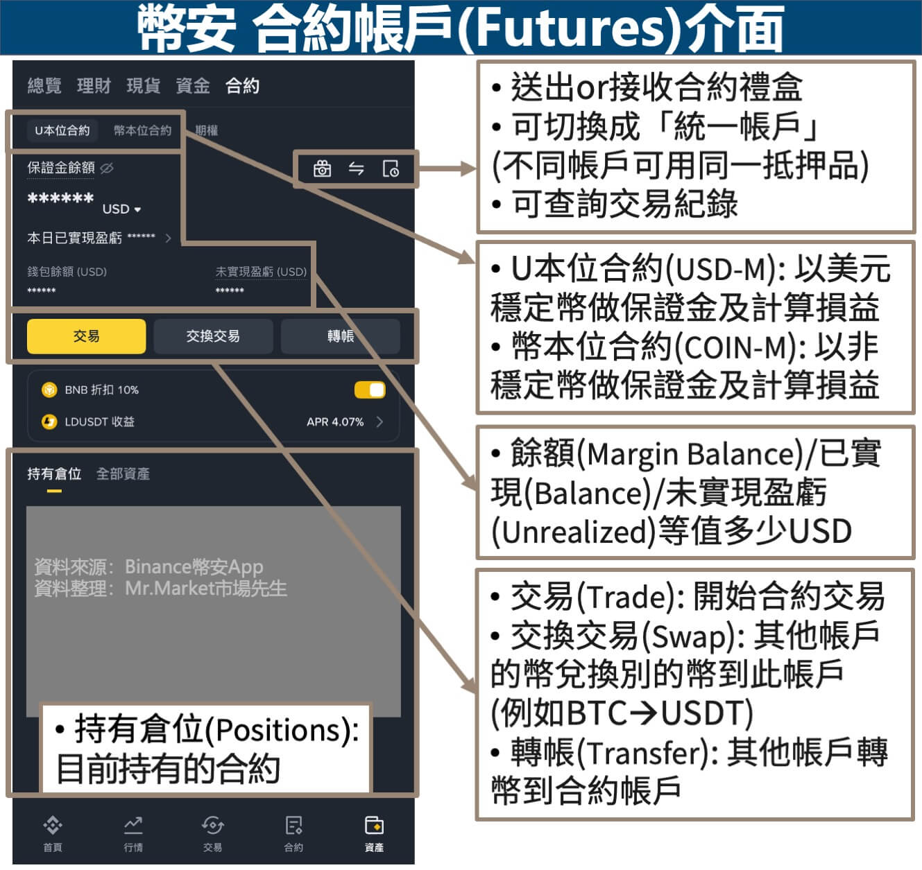 - 想交易合約 → 資金要轉到合約帳戶(Futures)