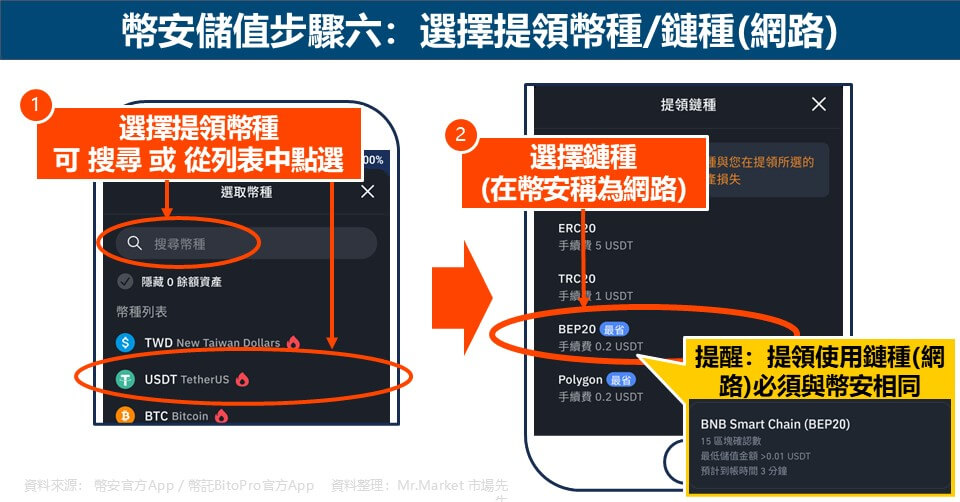市場先生要提醒的是,儲值使用的網路,必須與要轉帳出金的交易所相容才能轉帳,不同網路轉帳可能導致遺失加密貨幣。