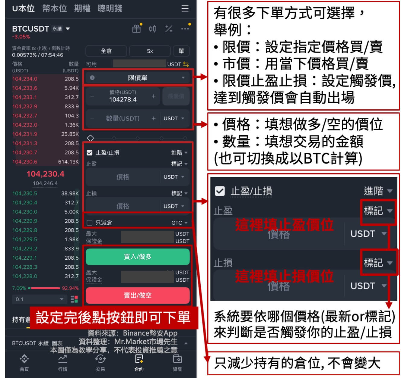 本篇市場先生將介紹幣安合約交易介面基本功能,以及如何設定止盈止損單。