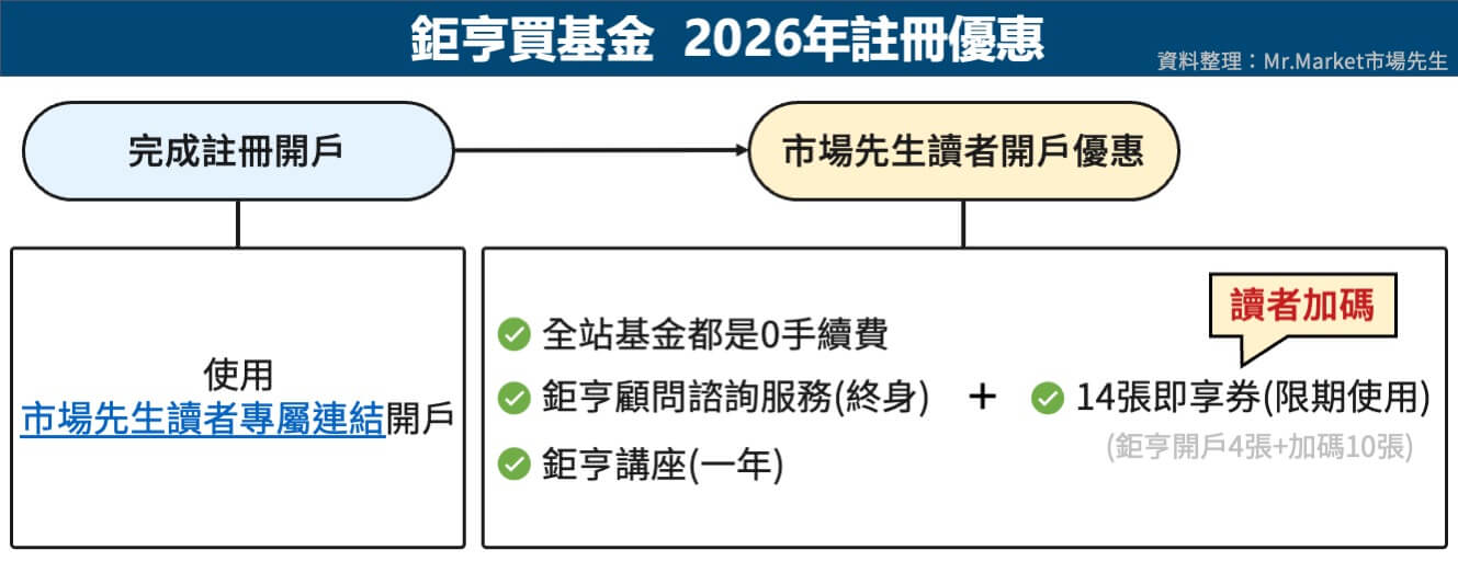 記得用專屬連結開戶,才會有加碼優惠 (鉅亨顧問/講座/14張即享券):鉅亨買基金×市場先生開戶連結