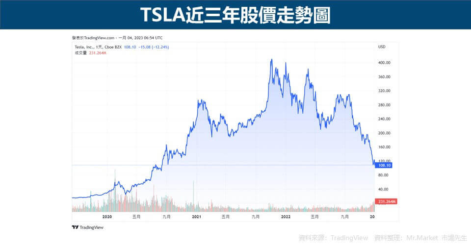 但是,觀察TSLA這段期間的股價表現,卻從最高點跌幅超過70%。這樣的表現,對特斯拉的投資人無疑是一大打擊。