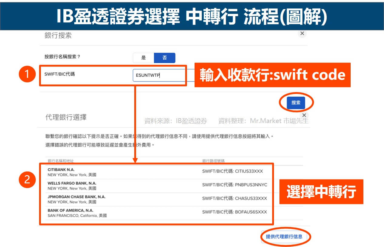 IB盈透證券中轉行教學-出金時如何選擇中轉行?(圖解流程/中轉行費用)