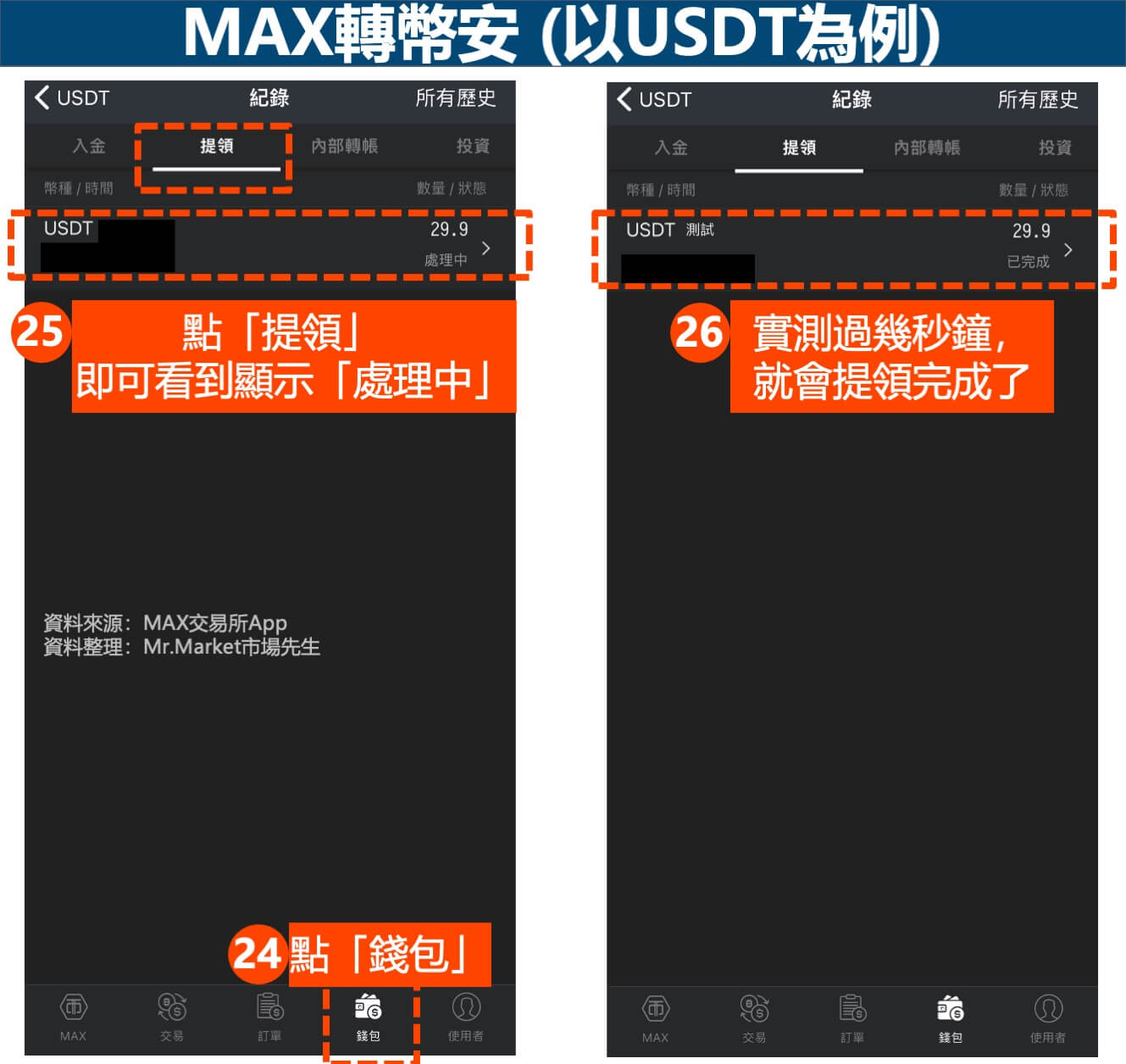 - 步驟四:MAX轉其他交易所 → 轉USDT到其他交易所(例如幣安)